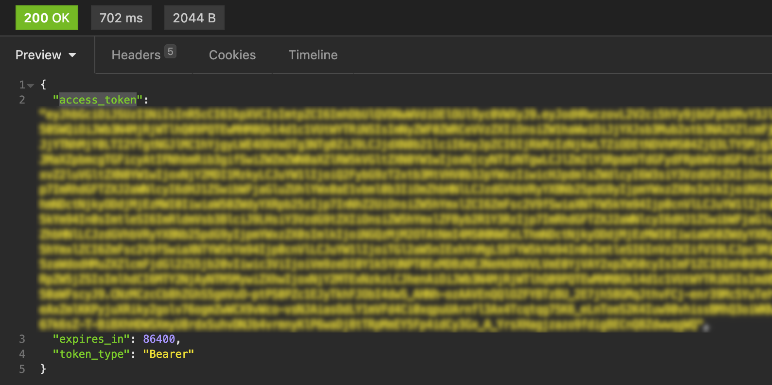 This will return a response with a valid access_token, you will use this token for the next requests.